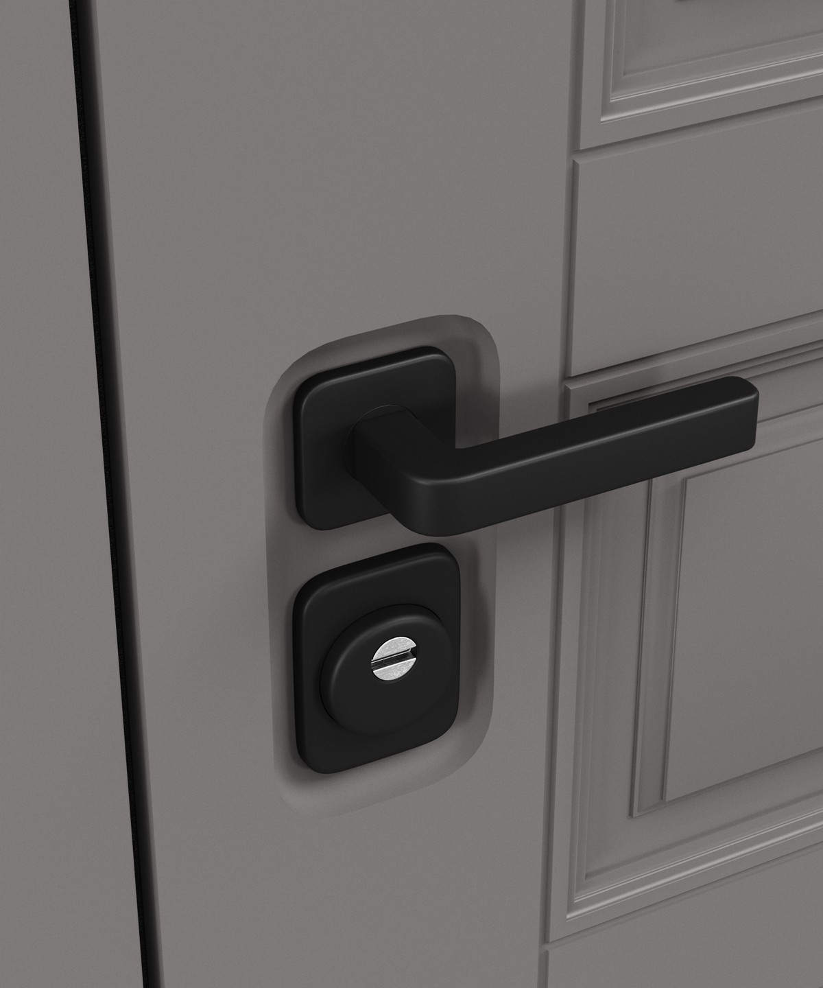 • Внешняя отделка: фактурный мдф в оттенке Грей нубук — элегантное решение для входной зоны.